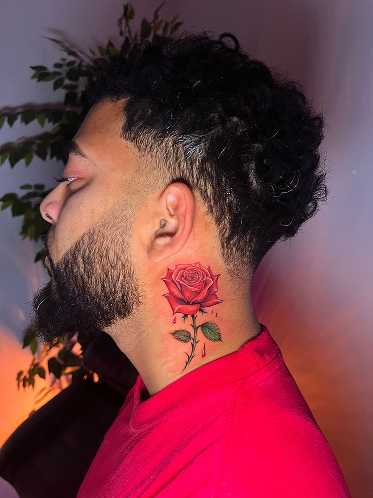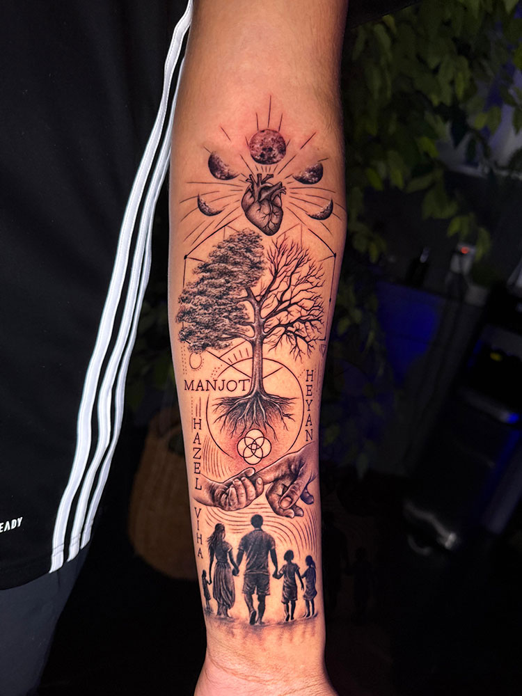 Sukh is a talented tattoo artist who began his drawing journey at a young age, developing a keen eye for detail and precision. With three years of professional tattooing experience, Sukh has mastered the art of fine line and realism styles, creating tattoos that feel alive with intricate, lifelike detail. His work reflects a deep understanding of shading and line work, allowing him to produce pieces that are both delicate and striking. Known for his steady hand and artistic passion, Sukh has quickly made a name for himself in the tattoo industry.